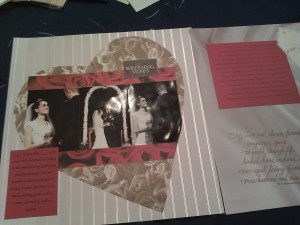1. Those are gorgeous pages! I’d love to scrapbook our wedding someday, but haven’t yet. Scrapbooking takes a lot of time!!! Maybe someday… 🙂 What a beautiful gift to get some premade scrapbook pages, especially such lovely ones. 🙂